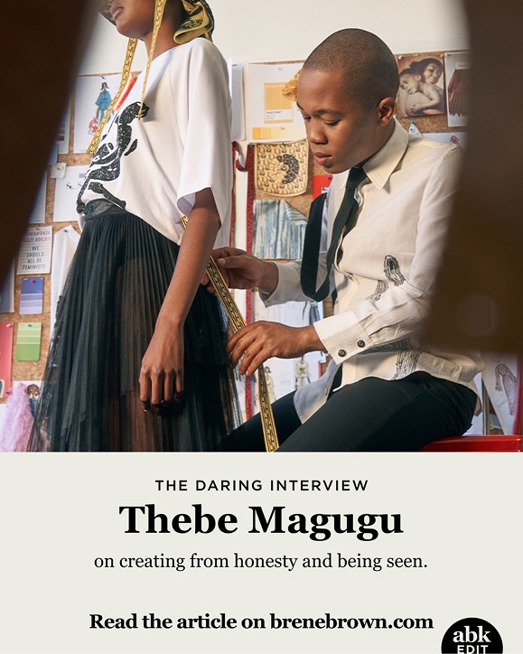 The Daring Interview series is a continuation of an interview series Brené started on her blog years ago. Reimagined and relaunched with the ABK Edit, the Daring Interview series highlights individuals who have made significant contributions in their fields and have been example of being brave in their life and work.