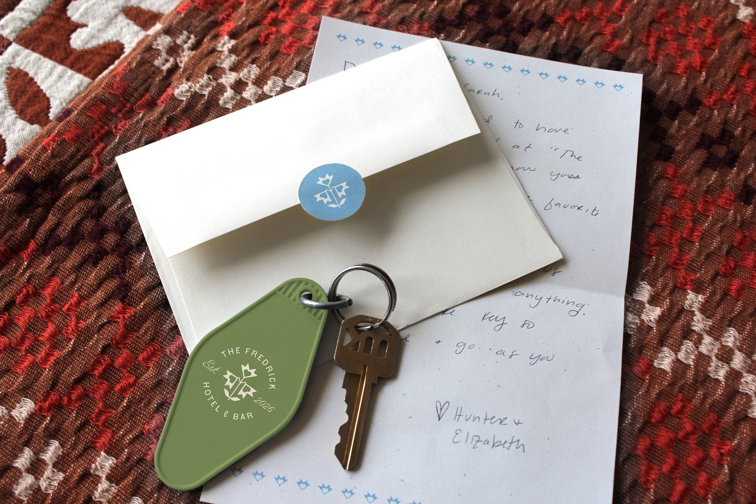 Inspired by my love of hosting, The Fredrick is a playful way to turn my guest room into a pretend hotel when friends and family come to visit. Expanding my interior design style that mixes mid-century modern, folk, and contemporary elements into the branded identity of The Fredrick, guests are invited into my world of whimsy, comfort, and delight, and hopefully feel spoiled during their stay.